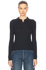 Guest In Residence Long Sleeve Shrunken Polo Top in Black