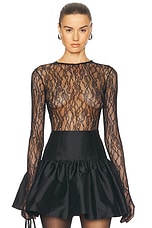 David Koma Floral Lace Long Sleeve Bodysuit in Black