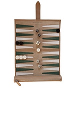 Throwing Doubles Tulum Travel Backgammon Board in Green, White, & Beige